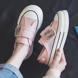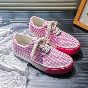 New summer pink plaid low-top canvas shoes for women