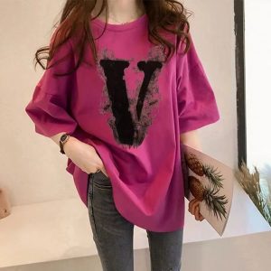 A loose-fitting and nimble half-sleeved top is versatile in Harajuku style