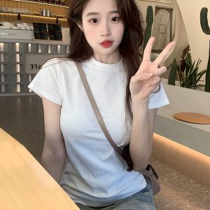 Casual fashion women’s T-shirt round neck short sleeve T-shirt woman