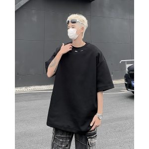New Short Sleeve T-Shirt Men’s 2024 New Summer Dropped Shoulders Solid Color Crew Neck Top Trendy Men’s Base Shirt