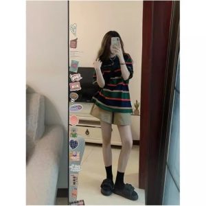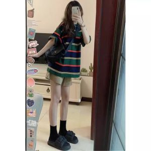 A loose-fitting and nimble half-sleeved top is versatile in Harajuku style quantity