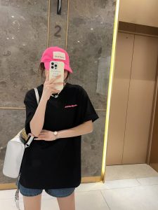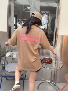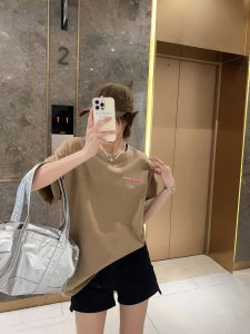 Cotton and linen women’s new double-layer bamboo texture sense round neck loose design women’s bat shirt T-shirt